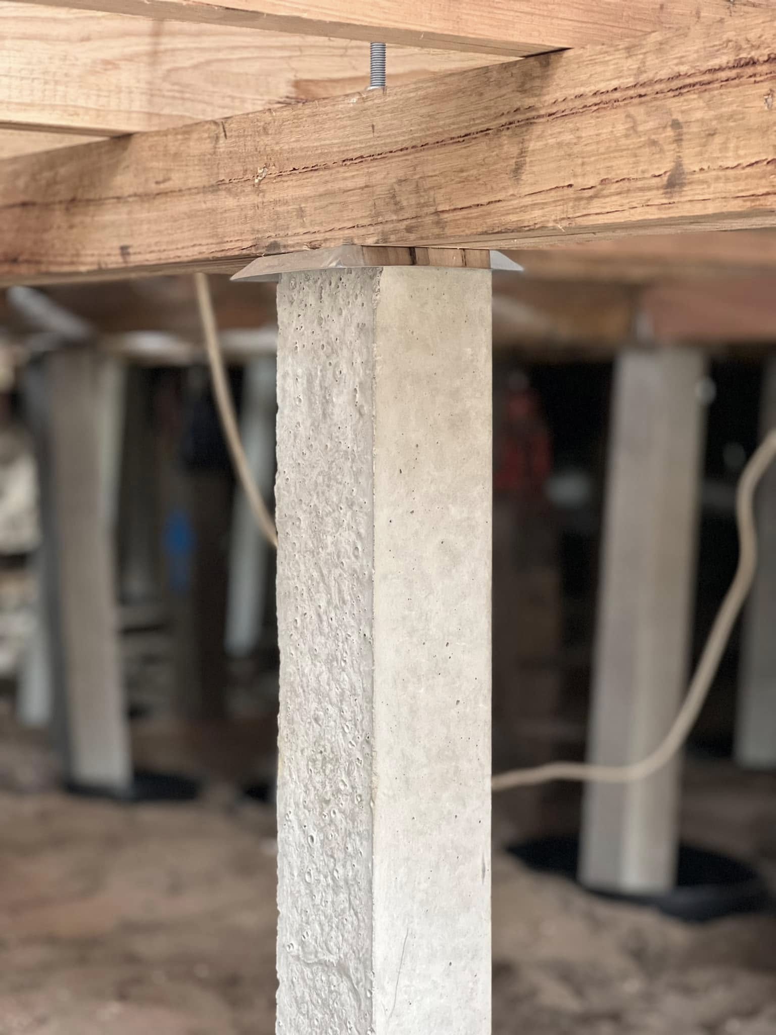 Replace old weatherboard-era timber stumps with modern concrete stumps. The right fix for any house still sitting on its original timber.